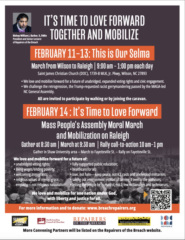 Join us for the “This Is Our Selma! — Wilson-to-Raleigh Moral March” (Feb. 11-13) and the “Mass People’s Assembly and Moral March and Mobilization on Raleigh” (Feb. 14).